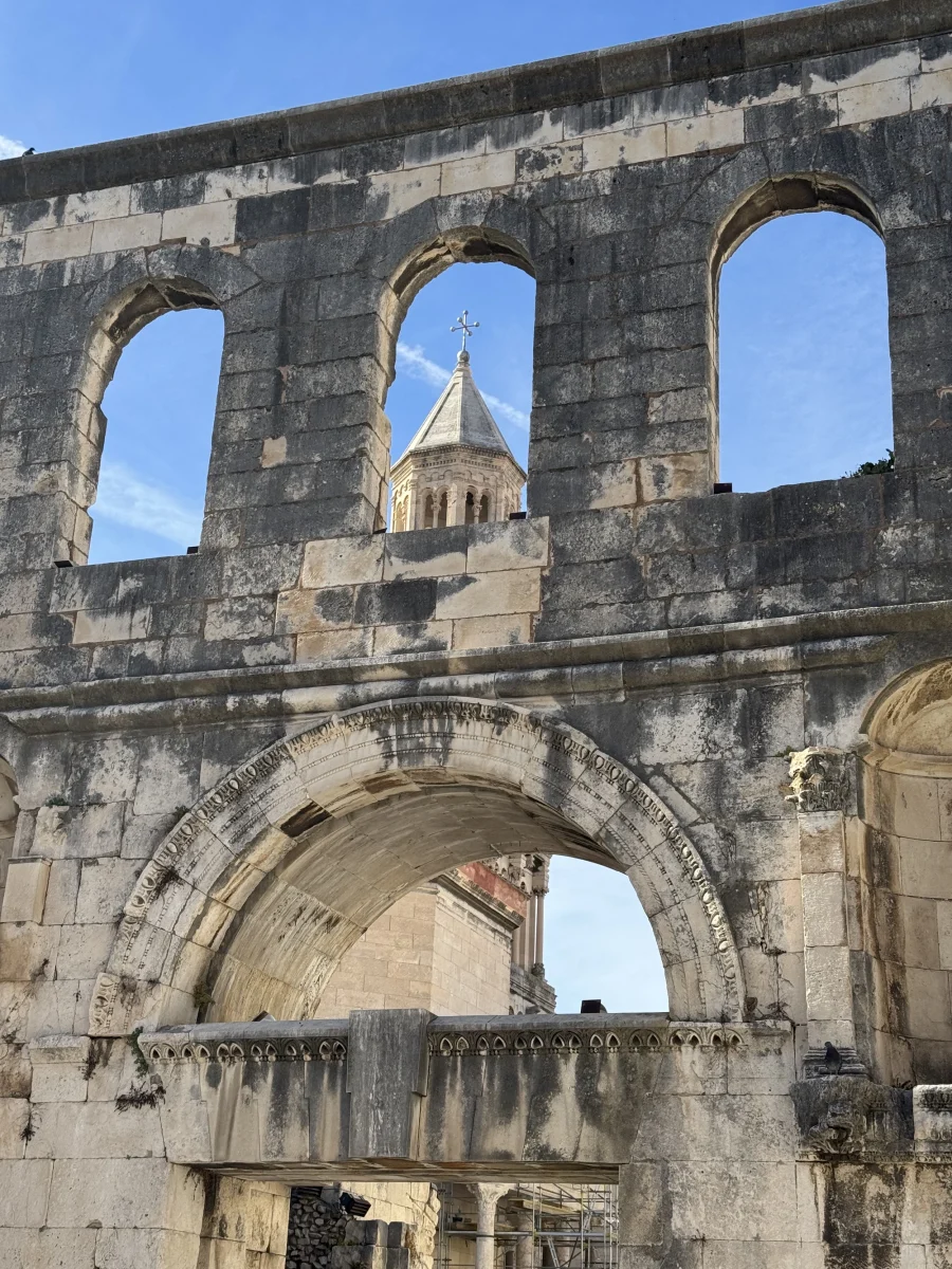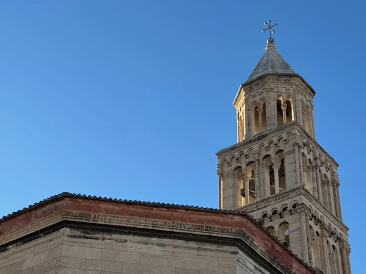 Within this broader historical framework, a particular structure inside Diocletian’s Palace acquires special significance: the mausoleum that the emperor had built at the beginning of the 4th century as his future burial place. After the fall of the Roman Empire and the gradual Christianization of the city, this monumental structure underwent an extraordinary transformation—it was converted into a Christian cathedral and dedicated to Saint Domnius (Duje), the bishop of Salona and an early Christian martyr who suffered precisely during Diocletian’s persecutions of Christians. Today it is the Cathedral of Saint Domnius in Split, one of the oldest cathedrals in the world still in continuous use within its original ancient structure.