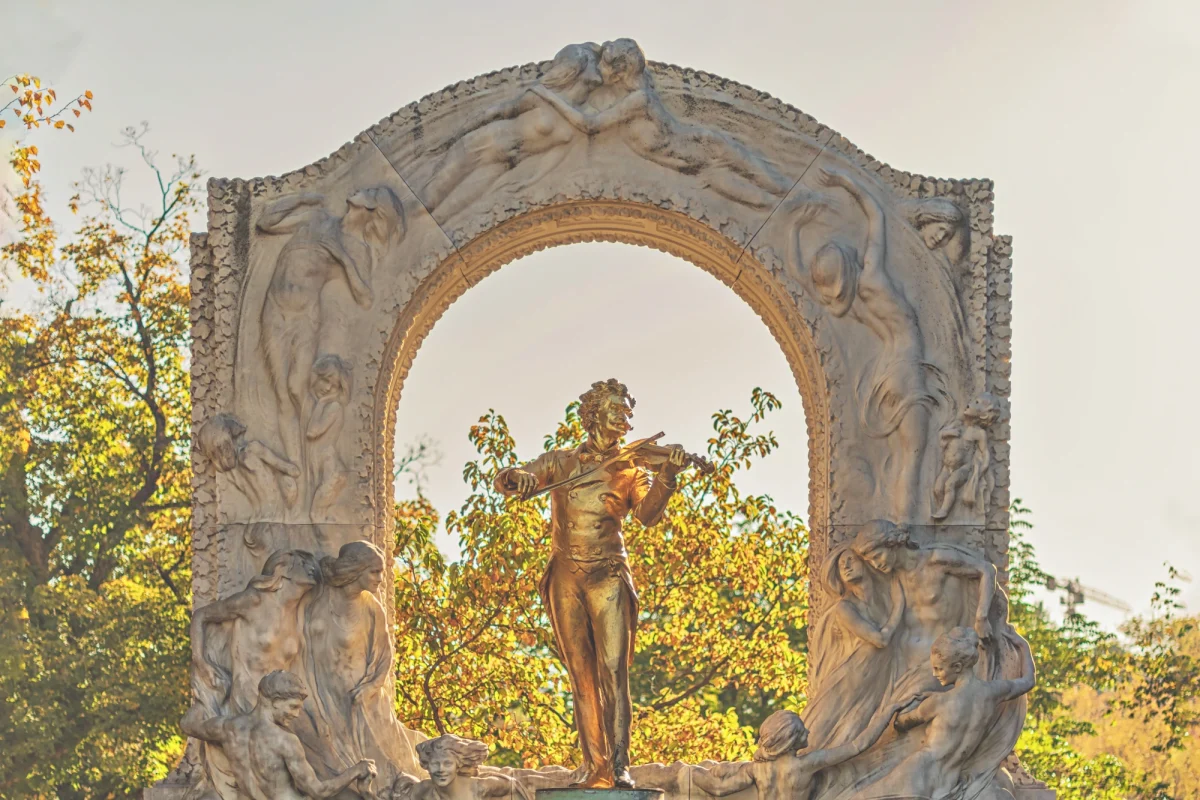 Golden monument to Johann Strauss II, composer, Stadtpark Johann Strauss.